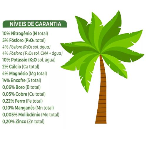 Contém 11 nutrientes essenciais para o crescimento da sua Palmeira, além de deixá-la linda, saudável e com folhagem bem verde.