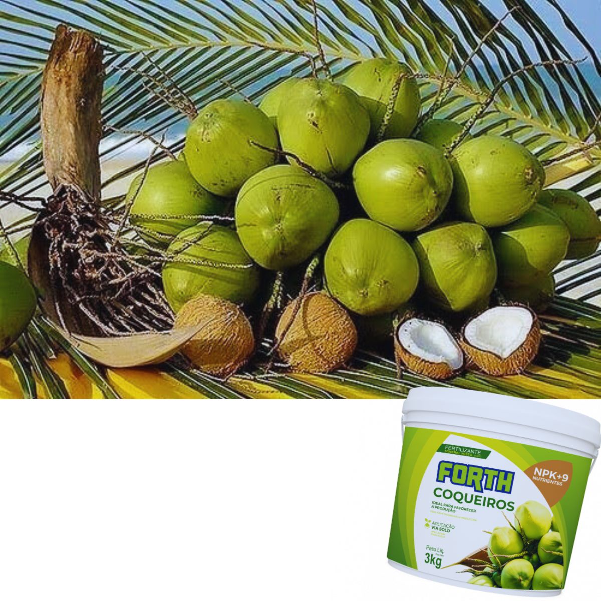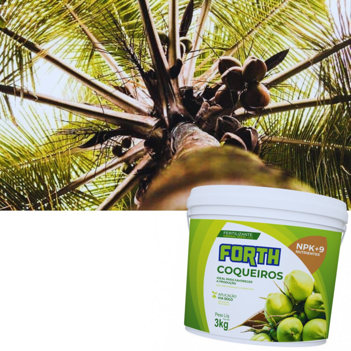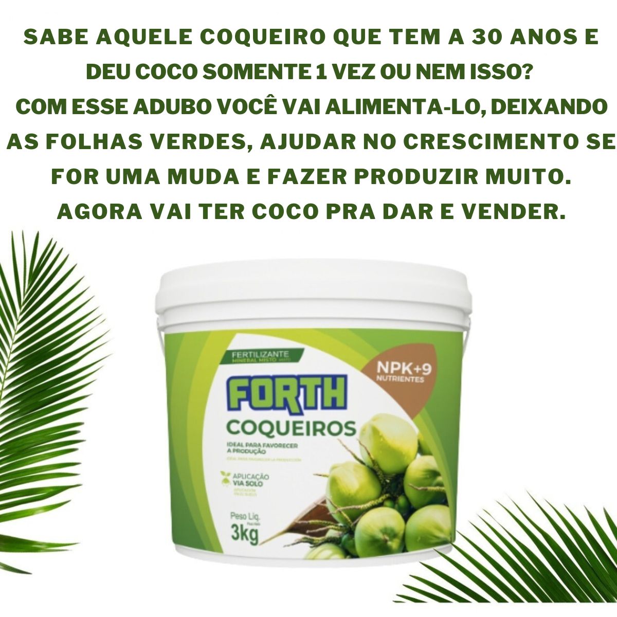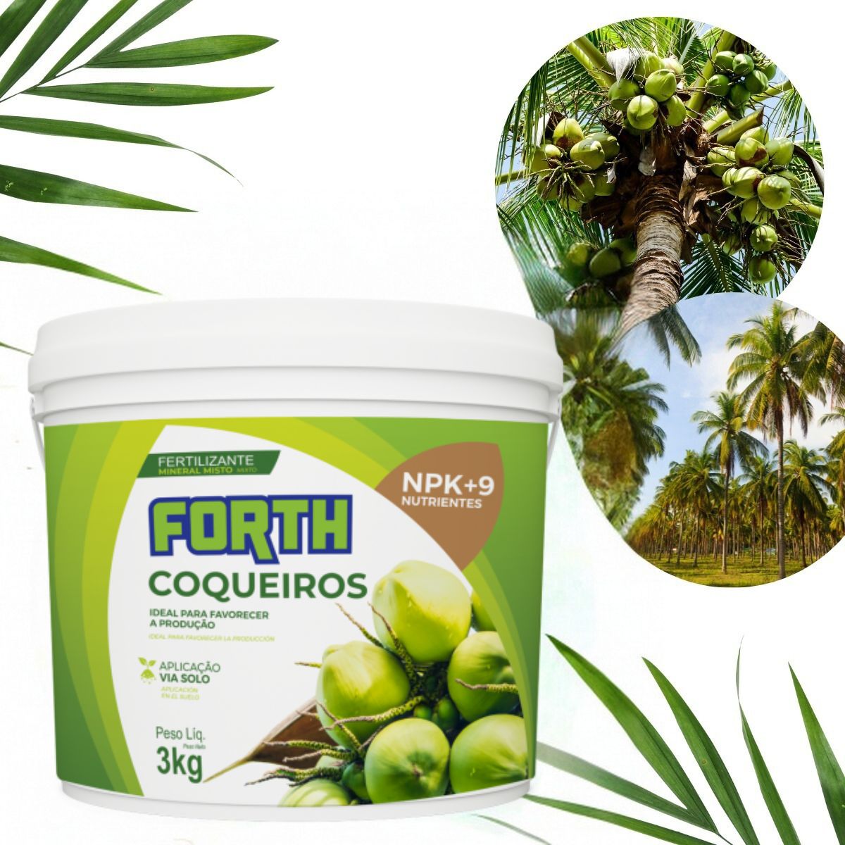 Atenção: Não aplicar o adubo nas folhas. Evitar aplicação nas horas mais quentes e sempre regar após a aplicação. A adubação com FORTH Coqueiros deve ser feita somente 30 dias após o plantio.